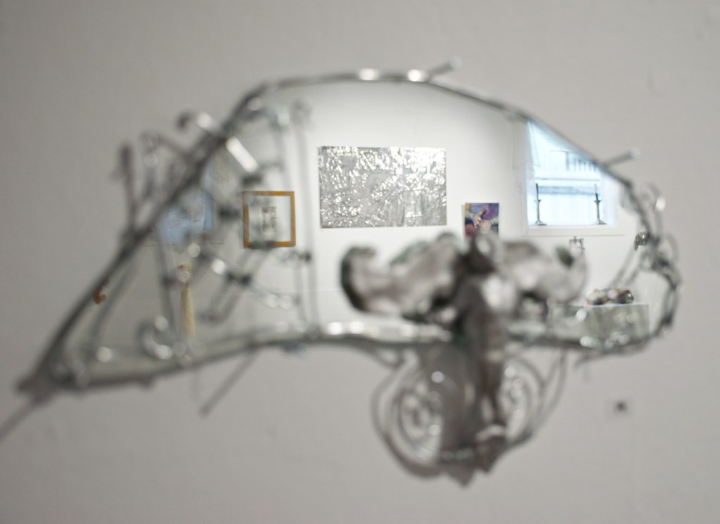 Luka’s textile and steel sculpture juxtaposes industrial and domestic craft textures, reflecting perceived incongruities between religious applications and contemporary life. By using the ‘frame’ as the subject itself, she emphasises its physical and conceptual application as a prescriber significance. More profoundly, Luka’s impersonal connection to religion allows her to use it as a frame through which to approach other significant concepts.